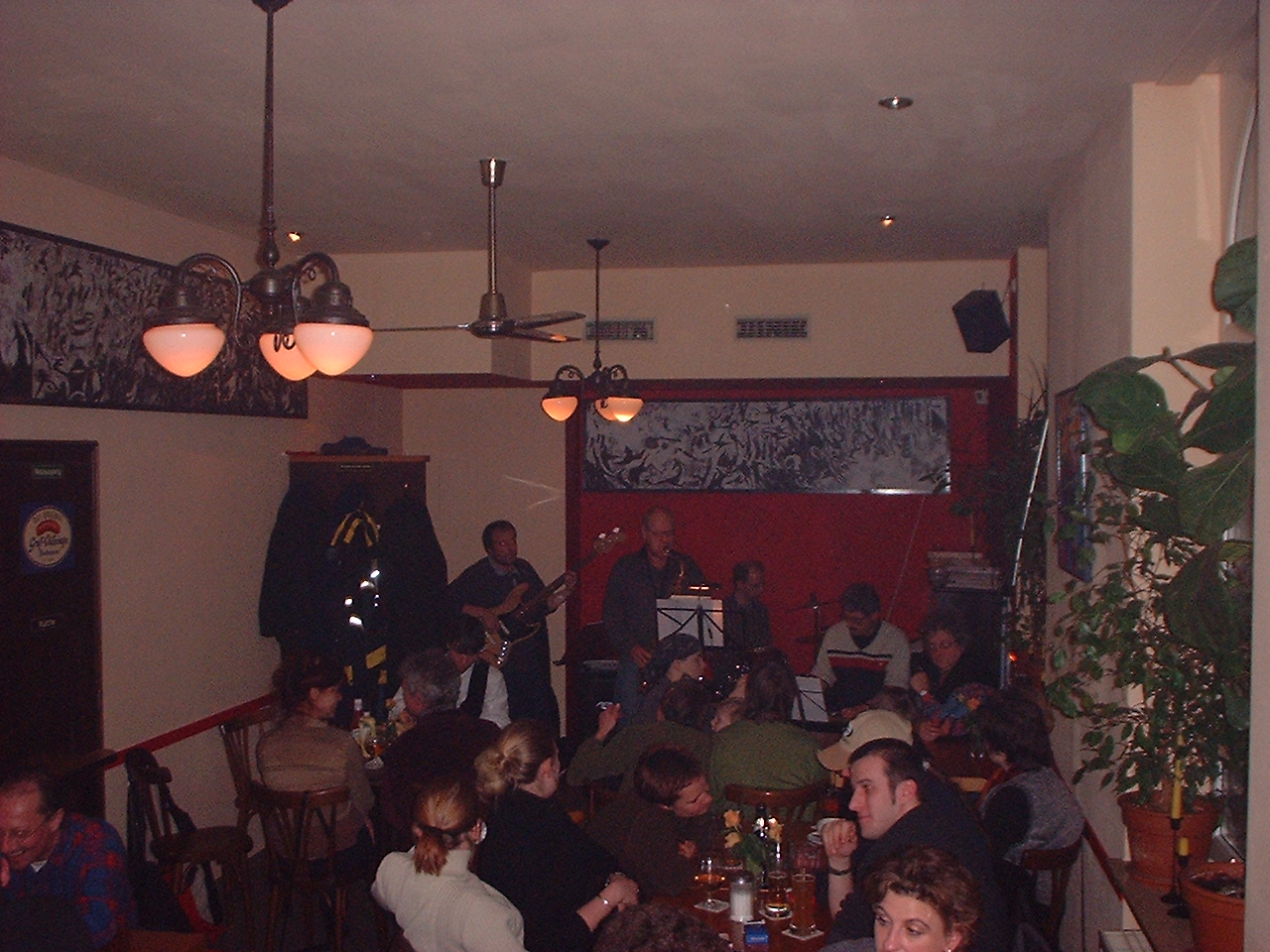 „War’s der 2:0 Erfolg der trainerlosen Frankfurter Eintracht oder der Latin Jazz der „4 too easy“ – Mannschaft? Die Stimmung in der Vowi am Abend des 4. Februars 01 war noch ausgelassener als sonst. Zweieinhalb Stunden Musik, bei der das Publikum mitging und mit viel Applaus die erste Veranstaltung dieser Art im neuen Jahrhundert hier begleitete. Mittlerweile ist die Vowi dabei, sich zum Musentempel in Bockenheim zu mausern; nicht nur, daß neue Bilder in der renovierten Kneipe hängen, es sind auch regelmäßige Musikveranstaltungen im kleinen, intimen Rahmen geplant. Größeres, wo es wesentlich lauter zur Sache gehen soll, ist erst in einer neuen Musikkneipe angedacht, wie mir Karsten, einer der Vowi-Wirte, erzählte, die in der Beta-Version den Namen „die elektrische volkswirtschaft“ (e-vowi.de/com) trägt. Allerdings, so Karsten, ist noch nichts spruchreif.