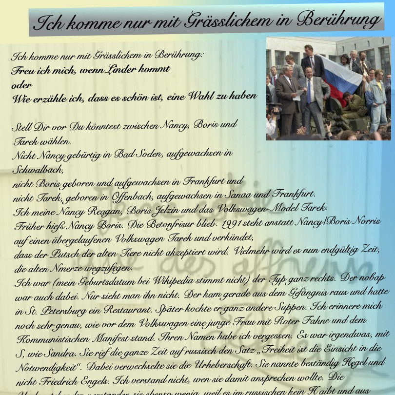 Ich meine Nancy Reagan, Boris Jelzin und das Volkswagen-Model Tarek.