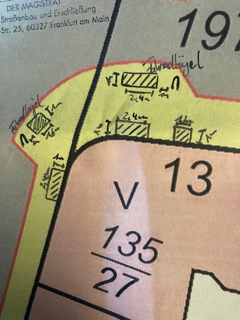 Möglicherweise sind die Radbügel sogar auf mein Ansinnen aufgestellt worden. Vor Jahren hatte ich auf einer Seite der Stadt Ffm im Netz, wo man entsprechende Vorschläge machen konnte, diese aufgelistet.