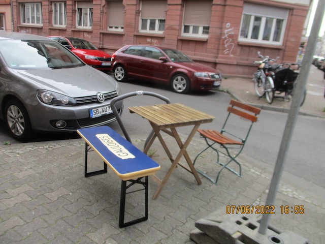 Ist es so schwer, frage ich mich, diese Sonderregel zu meiner Unterstützung anzuwenden? Vielmehr als mich sehr über den städtischen Angestellten des Ordnungsamtes zu ärgern und Ihnen dies diplomatisch darzustellen, anstatt mich bedingt durch den Krieg, Corona und Klimaveränderung resultierenden wirtschaftlichen und sozialen Verwerfungen, die mich durchaus betreffen, auseinander zu setzen, bleibt mir nicht. Wenn ich dies radebrechend versuchen würde, den Frauen aus einem Land im Krieg, die zurzeit in meiner Wirte-Wohnung verweilen, zu erklären, würde dies wohl ungläubiges Staunen hinterlassen, was in Deutschland möglich bzw. nicht möglich ist. Im Vergleich zu den Problemen der Frauen sind meine Probleme so klein, wie der von der Stadtpolizistin monierte Abstand zwischen Radbügel und meinen Tischen.