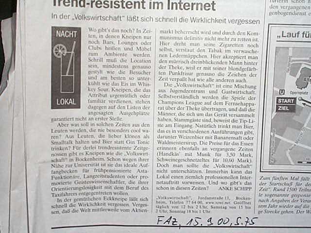 In der FAZ vom Freitag (Nr. 215, 15.09.00, S. 75) gab es einen Artikel in der Rubrik Nachtlokal über die Volkswirtschaft. Hier ist dazu mein Leserbrief: